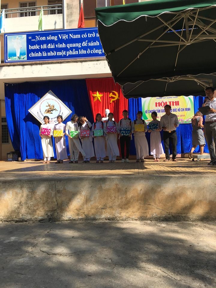Vào chiều ngày 17 tháng 5. Đoàn trường THPT Quang Trung đã tổ chức chung kết Hội thi kể chuyện tấm gương đạo đức Hồ Chí Minh. 9 thí sinh xuất sắc nhất của cả 3 khối.