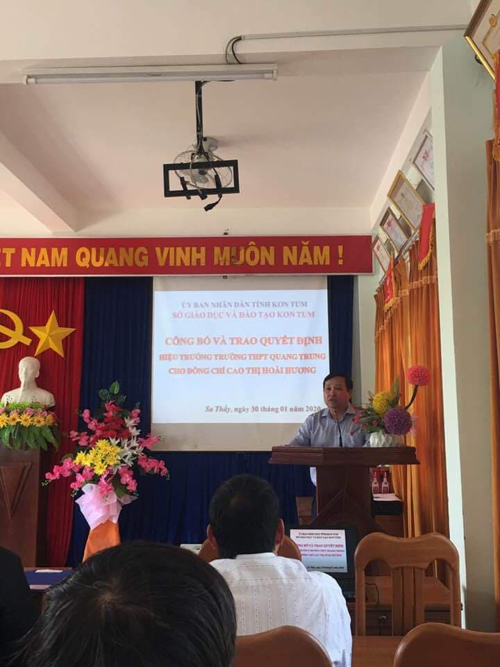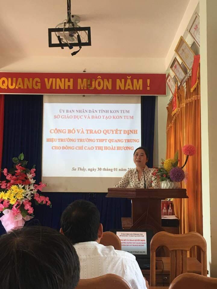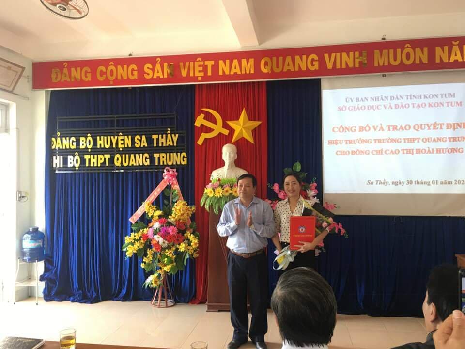 Sáng ngày 30/1/2020. Sở giáo dục tỉnh Kon Tum đã lên trao quyết định bổ nhiệm cô giáo Cao Thị Hoài Hương giữ chức vụ Hiệu trưởng trường THPT Quang Trung.