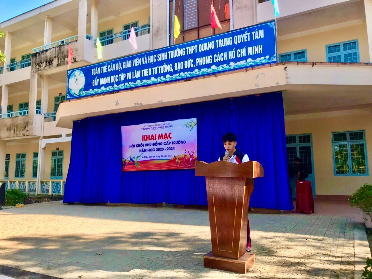 Hội khỏe Phù Đổng cấp trường năm học 2023-2024 của trường THPT Quang Trung đã được tổ chức từ ngày ngày 09/01/2024 đến ngày 20/01/2024. Đây là hoạt động nhằm triển khai Kế hoạch số 175/KH-SGDĐT ngày 20 tháng 12 năm 2023 của Sở Giáo dục và Đào tạo Kon Tum về việc Hội khỏe Phù Đổng tỉnh Kon Tum lần thứ IX và tham gia hội khỏe toàn quốc lần thứ X năm 2024.