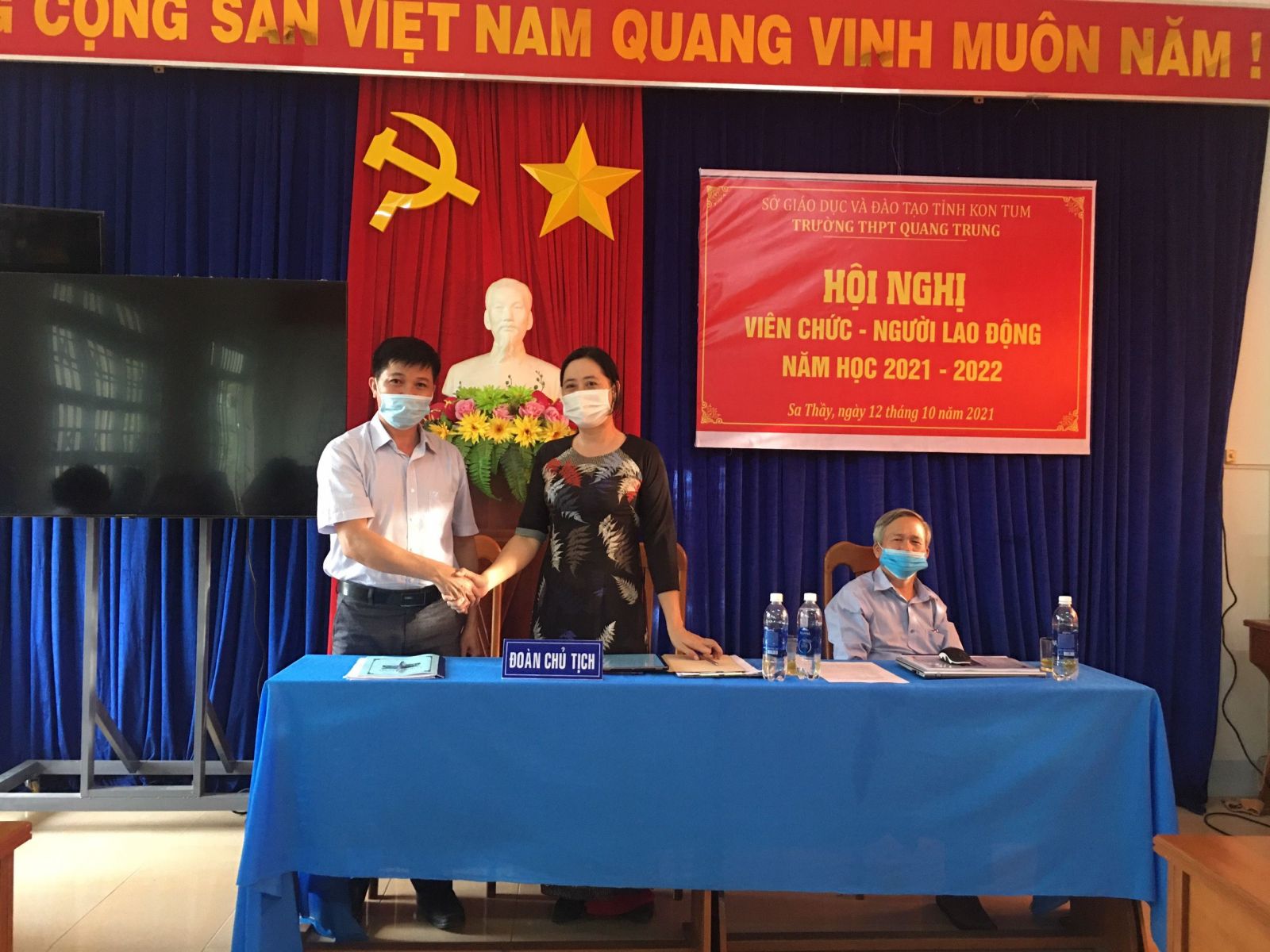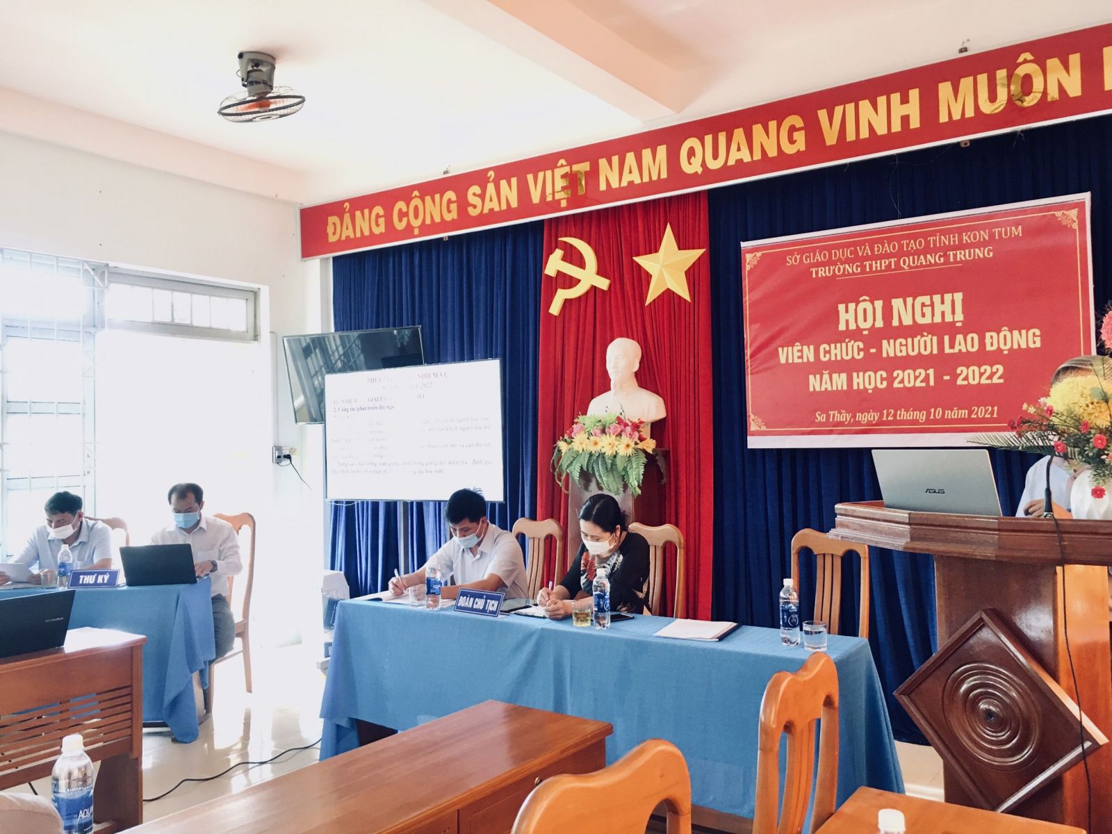 Thực hiện Chỉ đạo của Sở GD&ĐT KonTum, Công đoàn ngành Giáo dục tỉnh KonTum về việc Tổ chức Hội nghị viên chức – người lao động năm học 2021-2022, ngày 12/10/2021, trường THPT Quang Trung phối hợp với Công đoàn cơ sở tổ chức Hội nghị Viên chức – người lao động năm học 2021-2022.