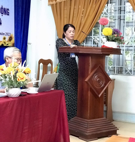 Hội nghị đã lắng nghe đồng chí Huỳnh Duy Huấn thay mặt BCH Công đoàn cơ sở báo cáo Hoạt động Công đoàn năm học 2022-2023 và dự thảo phương hướng nhiệm vụ năm học 2023-2024.