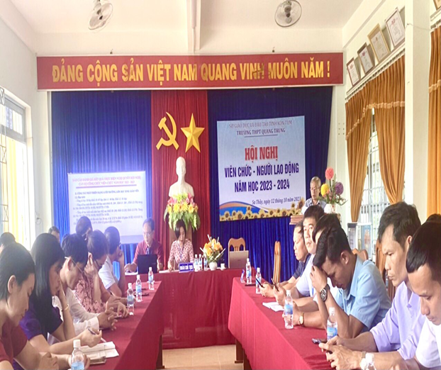 Hội nghị viên chức – người lao động trường THPT Quang Trung năm học 2023-2024 đã được tổ chức vào lúc 13 giờ 30 ngày 12/10/2023 với sự tham gia đông đủ nghiêm túc, nhiệt tình, trách nhiệm của tập thể hội đồng sư phạm nhà trường.