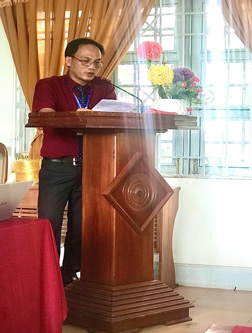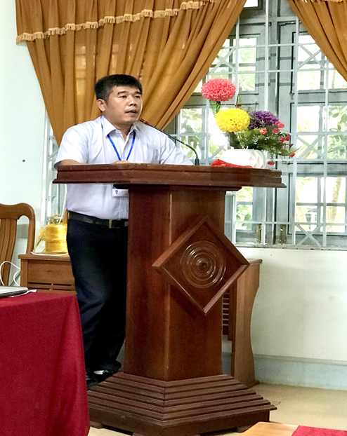 Thầy Hồ Xuân Vương-Bí thư Đoàn trường, trình bày tham luận tại Hội nghị