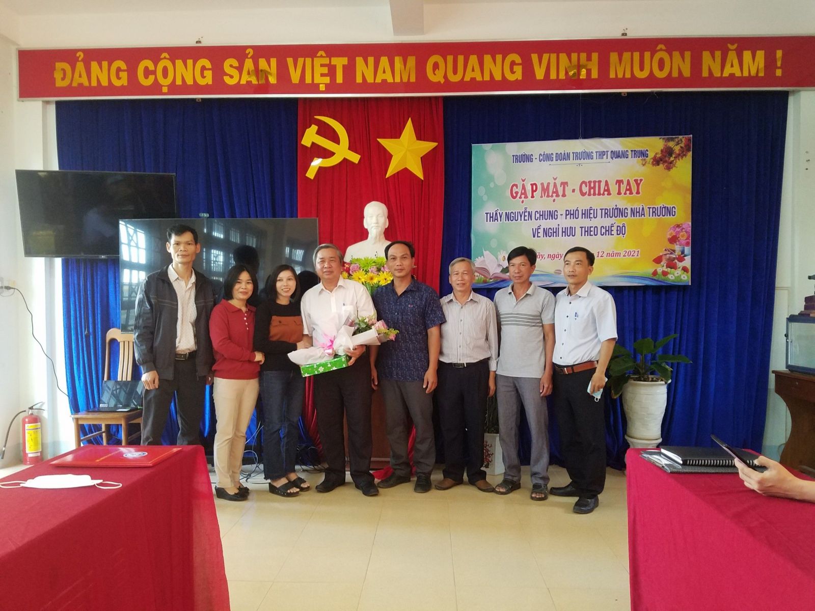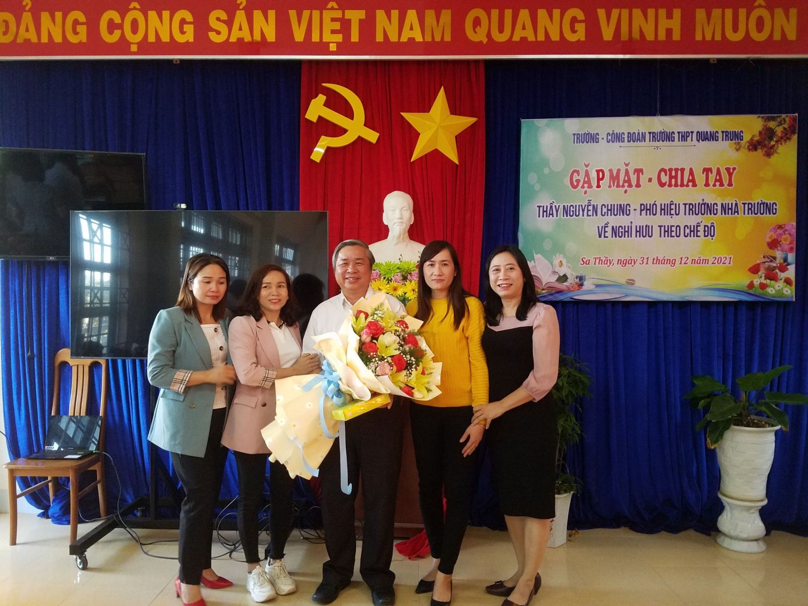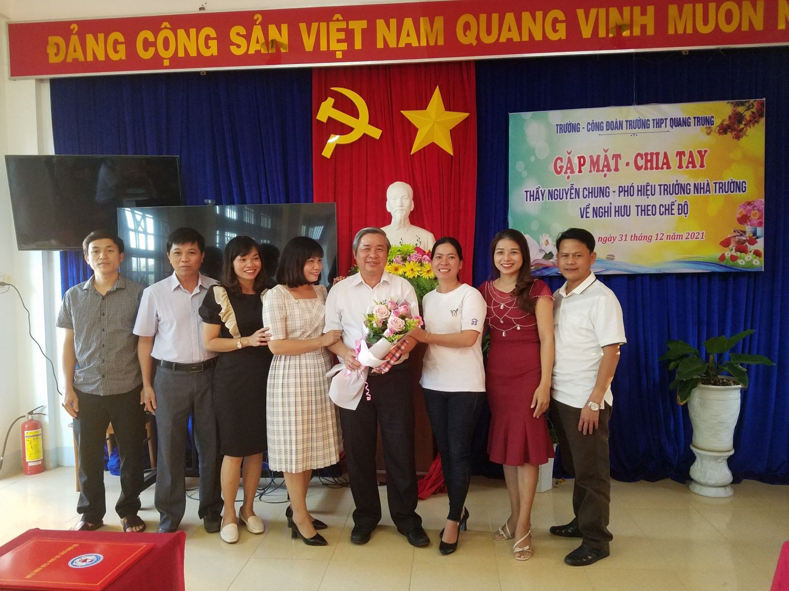 Chiều ngày 31/12/2021. Trường THPT Quang Trung chia tay thầy Nguyễn Chung – Phó hiệu trưởng nhà trường về nghỉ hưu theo chế độ.