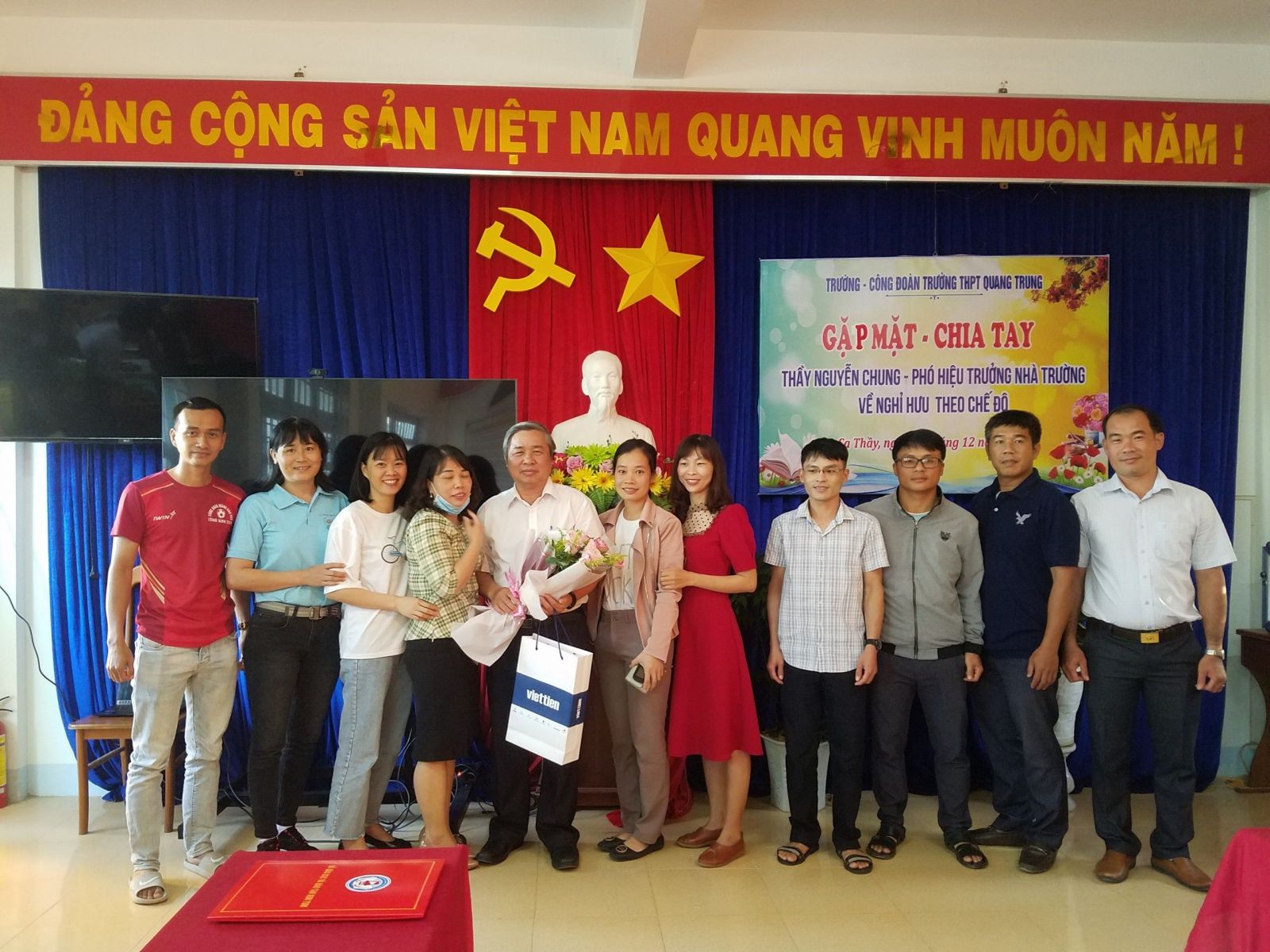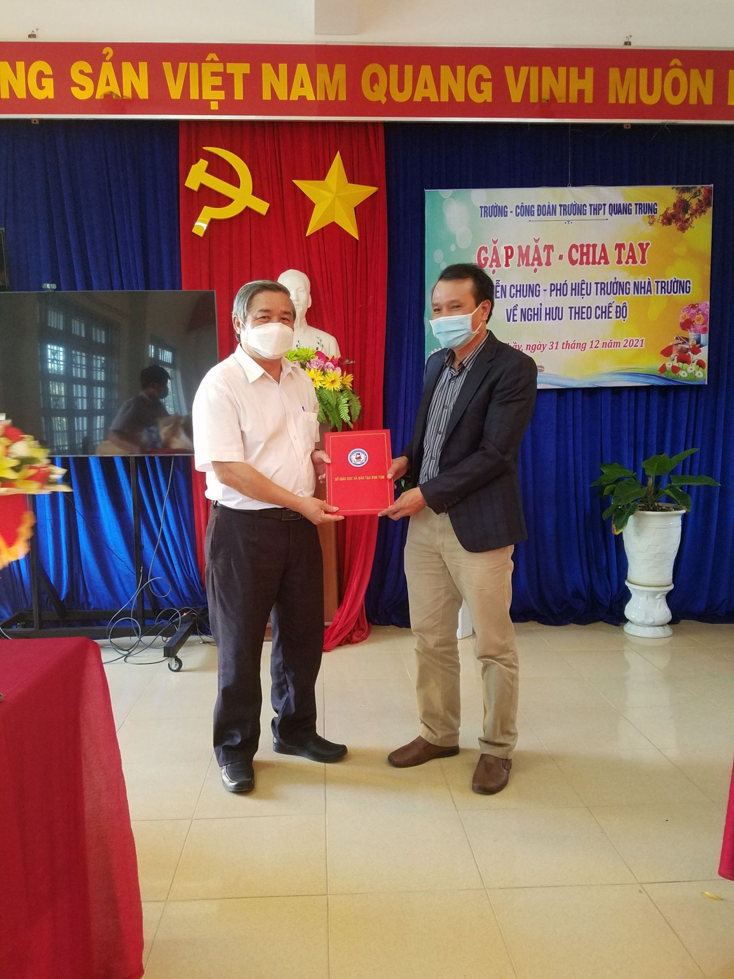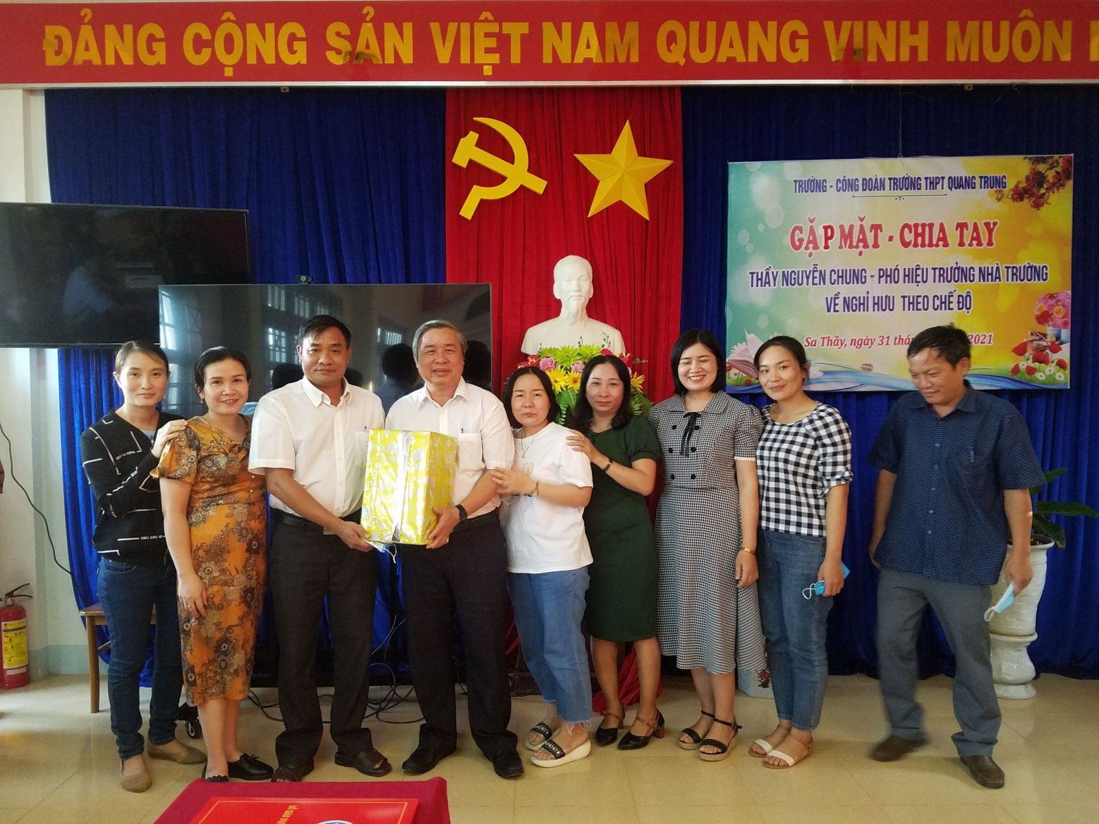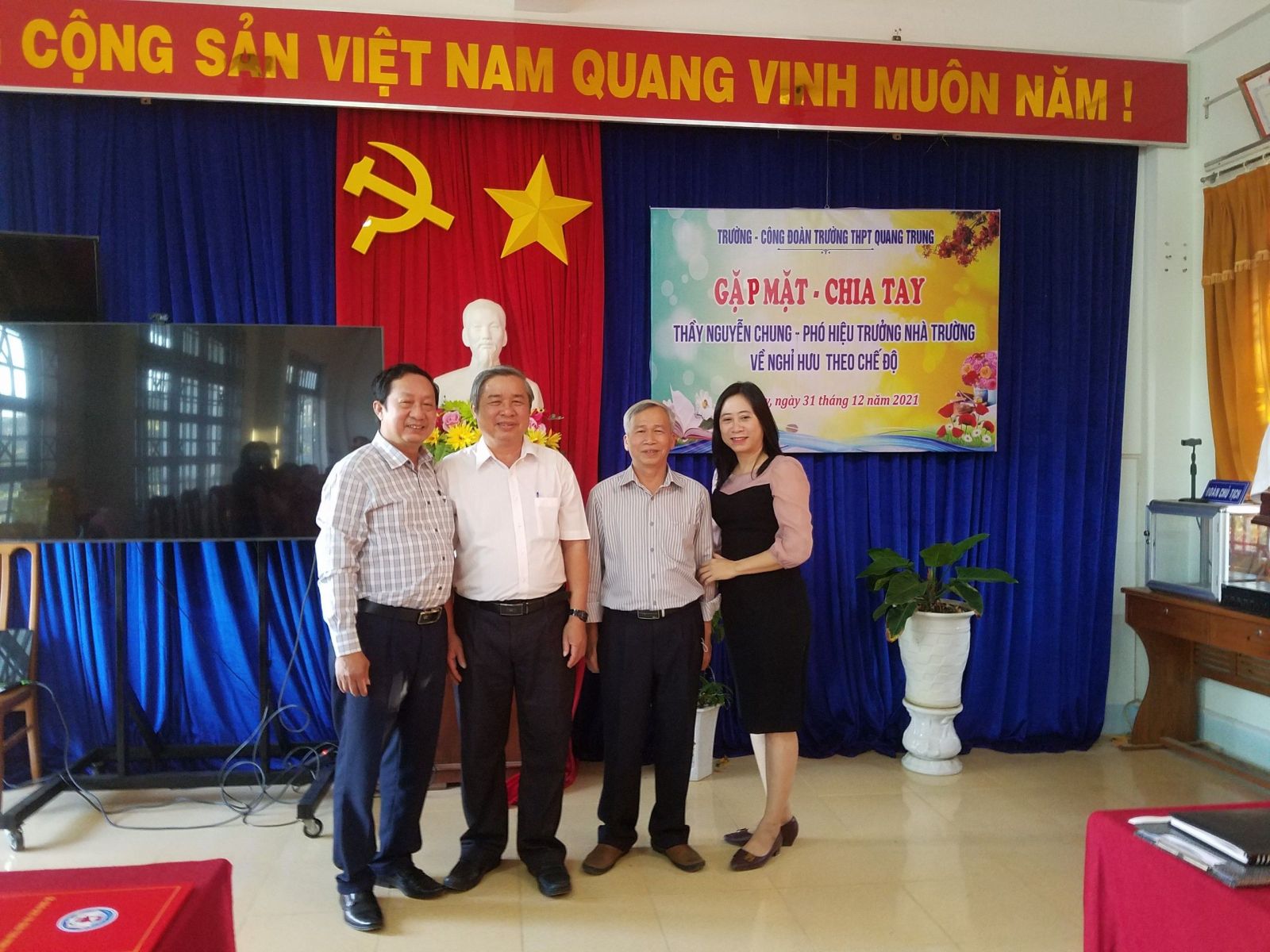 Chiều ngày 31/12/2021. Trường THPT Quang Trung chia tay thầy Nguyễn Chung – Phó hiệu trưởng nhà trường về nghỉ hưu theo chế độ.